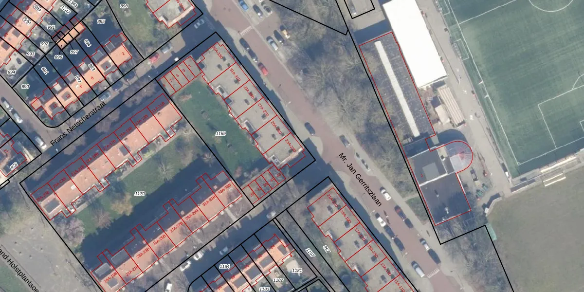 Mr. Jan Gerritszlaan 23-A is gelegen op kadastraal perceel STN01D1169. Deze kadastrale aanduiding is uniek en wordt gebruikt door het Kadaster om eigendomsrechten en andere zakelijke rechten vast te leggen. Het perceel maakt onderdeel uit van de kadastrale gemeente Schoten.