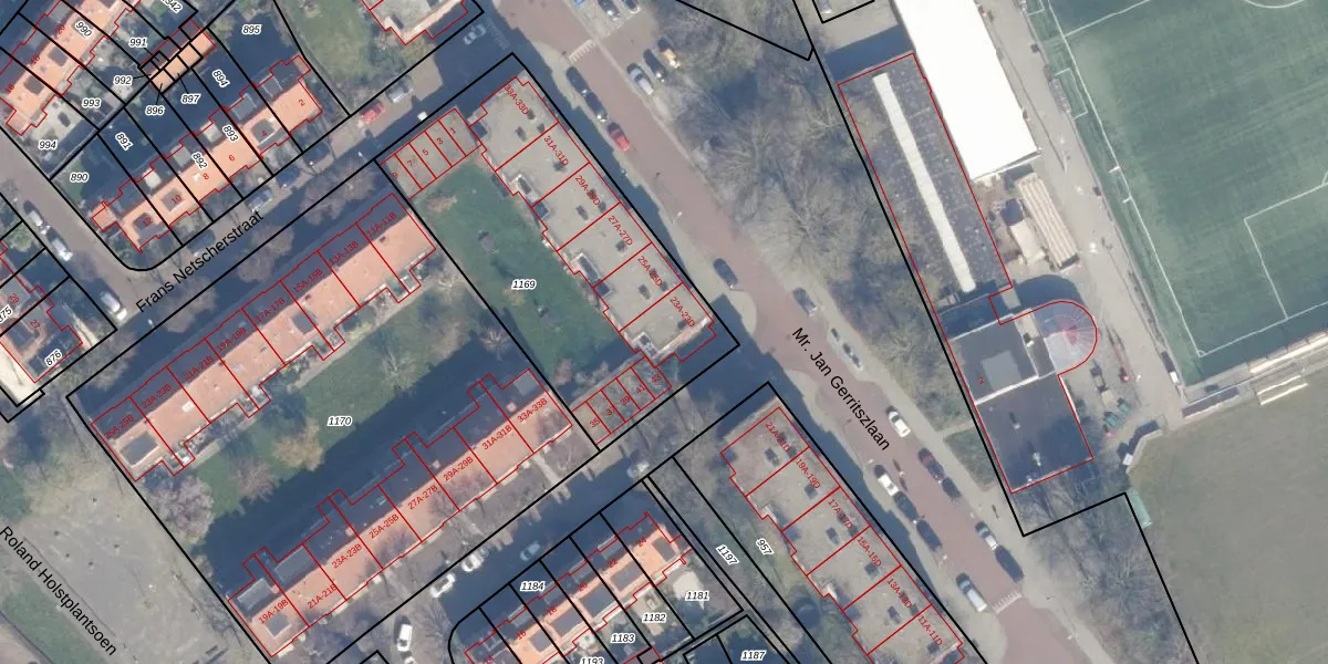Mr. Jan Gerritszlaan 23-C is gelegen op kadastraal perceel STN01D1169. Deze kadastrale aanduiding is uniek en wordt gebruikt door het Kadaster om eigendomsrechten en andere zakelijke rechten vast te leggen. Het perceel maakt onderdeel uit van de kadastrale gemeente Schoten.