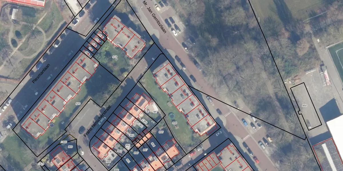 Het perceel waarop Mr. Jan Gerritszlaan 43-II staat heeft een oppervlakte van 1212 m². Dit is een zeer groot perceel. De perceeloppervlakte wordt geregistreerd door het Kadaster. Gedetailleerde informatie over de maten van dit perceel kunt u vinden in het rapport Kadastrale kaart met maatvoering van Mr. Jan Gerritszlaan 43-II.