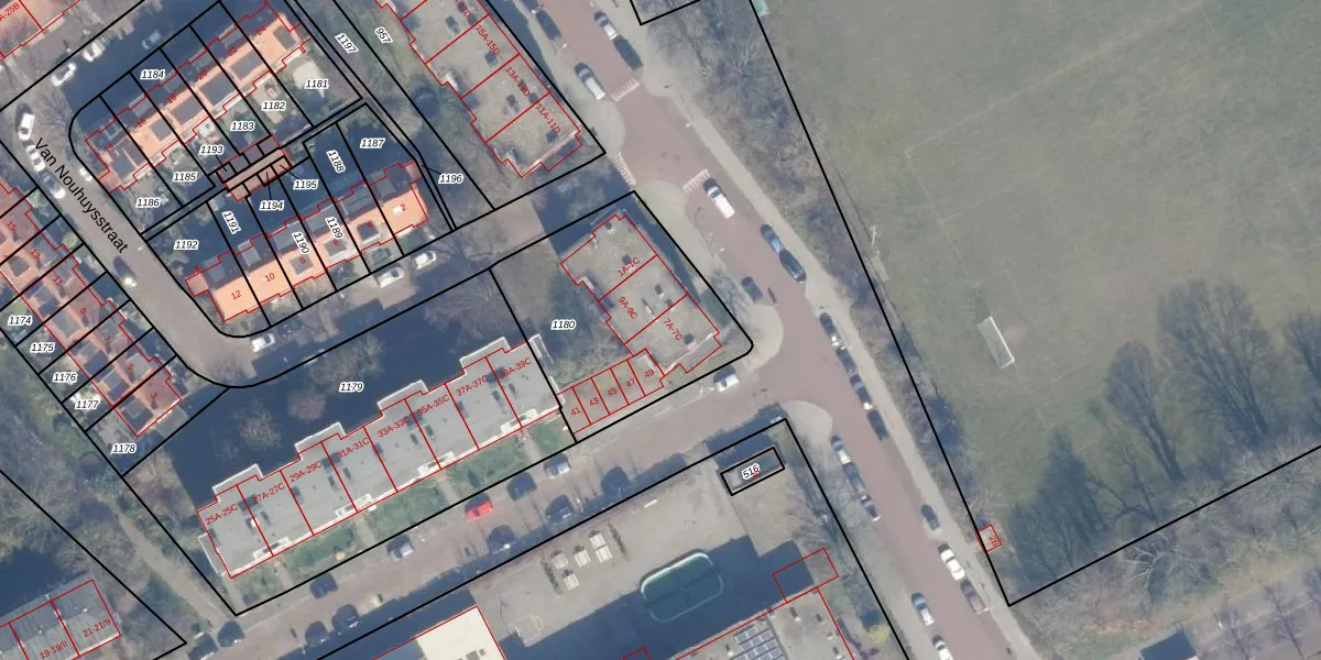 Mr. Jan Gerritszlaan 7-B is gelegen op kadastraal perceel STN01D1180. Deze kadastrale aanduiding is uniek en wordt gebruikt door het Kadaster om eigendomsrechten en andere zakelijke rechten vast te leggen. Het perceel maakt onderdeel uit van de kadastrale gemeente Schoten.
