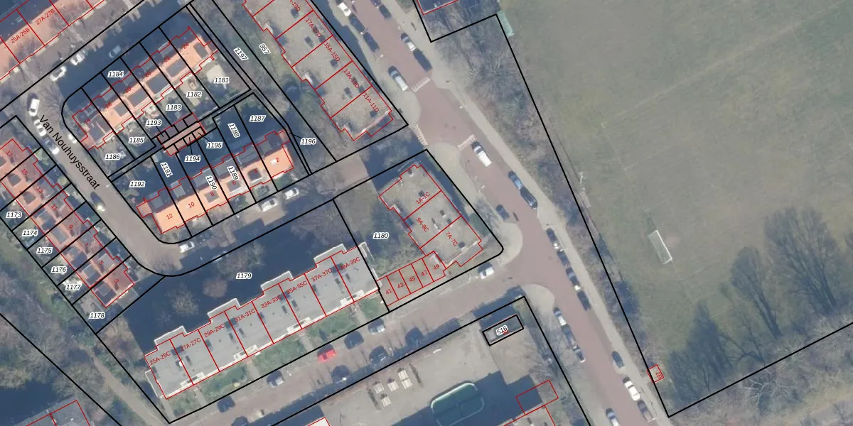 Mr. Jan Gerritszlaan 9-B is gelegen op kadastraal perceel STN01D1180. Deze kadastrale aanduiding is uniek en wordt gebruikt door het Kadaster om eigendomsrechten en andere zakelijke rechten vast te leggen. Het perceel maakt onderdeel uit van de kadastrale gemeente Schoten.