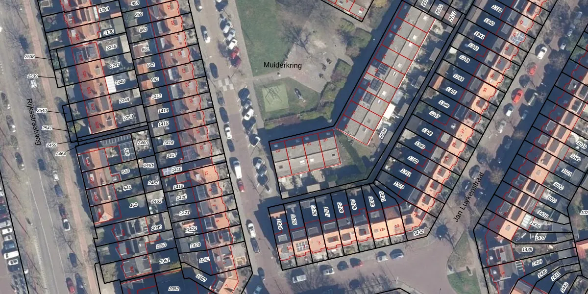 Het perceel waarop Muiderkring 22 staat heeft een oppervlakte van 1574 m². Dit is een zeer groot perceel. De perceeloppervlakte wordt geregistreerd door het Kadaster. Gedetailleerde informatie over de maten van dit perceel kunt u vinden in het rapport Kadastrale kaart met maatvoering van Muiderkring 22.