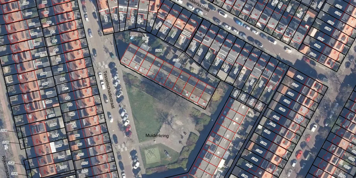 Het perceel waarop Muiderkring 7 staat heeft een oppervlakte van 1297 m². Dit is een zeer groot perceel. De perceeloppervlakte wordt geregistreerd door het Kadaster. Gedetailleerde informatie over de maten van dit perceel kunt u vinden in het rapport Kadastrale kaart met maatvoering van Muiderkring 7.
