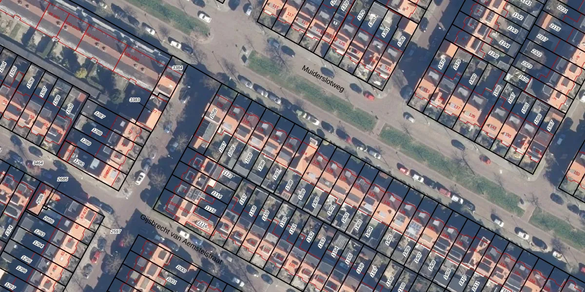 Het perceel waarop Muiderslotweg 122 staat heeft een oppervlakte van 136 m². Dit is een middelgroot perceel. De perceeloppervlakte wordt geregistreerd door het Kadaster. Gedetailleerde informatie over de maten van dit perceel kunt u vinden in het rapport Kadastrale kaart met maatvoering van Muiderslotweg 122.