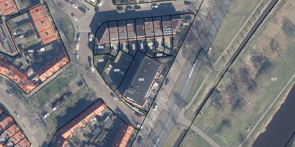 Het perceel waarop Muiderslotweg 256 staat heeft een oppervlakte van 930 m². Dit is een groot perceel. De perceeloppervlakte wordt geregistreerd door het Kadaster. Gedetailleerde informatie over de maten van dit perceel kunt u vinden in het rapport Kadastrale kaart met maatvoering van Muiderslotweg 256.
