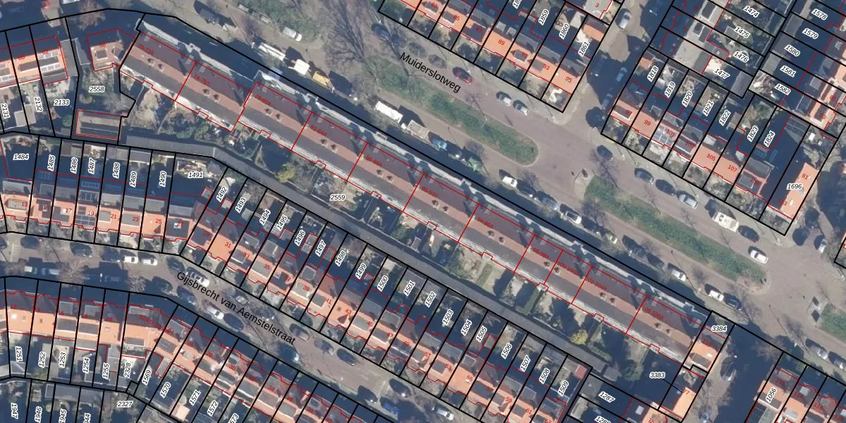 Het perceel waarop Muiderslotweg 90-I staat heeft een oppervlakte van 3877 m². Dit is een zeer groot perceel. De perceeloppervlakte wordt geregistreerd door het Kadaster. Gedetailleerde informatie over de maten van dit perceel kunt u vinden in het rapport Kadastrale kaart met maatvoering van Muiderslotweg 90-I.