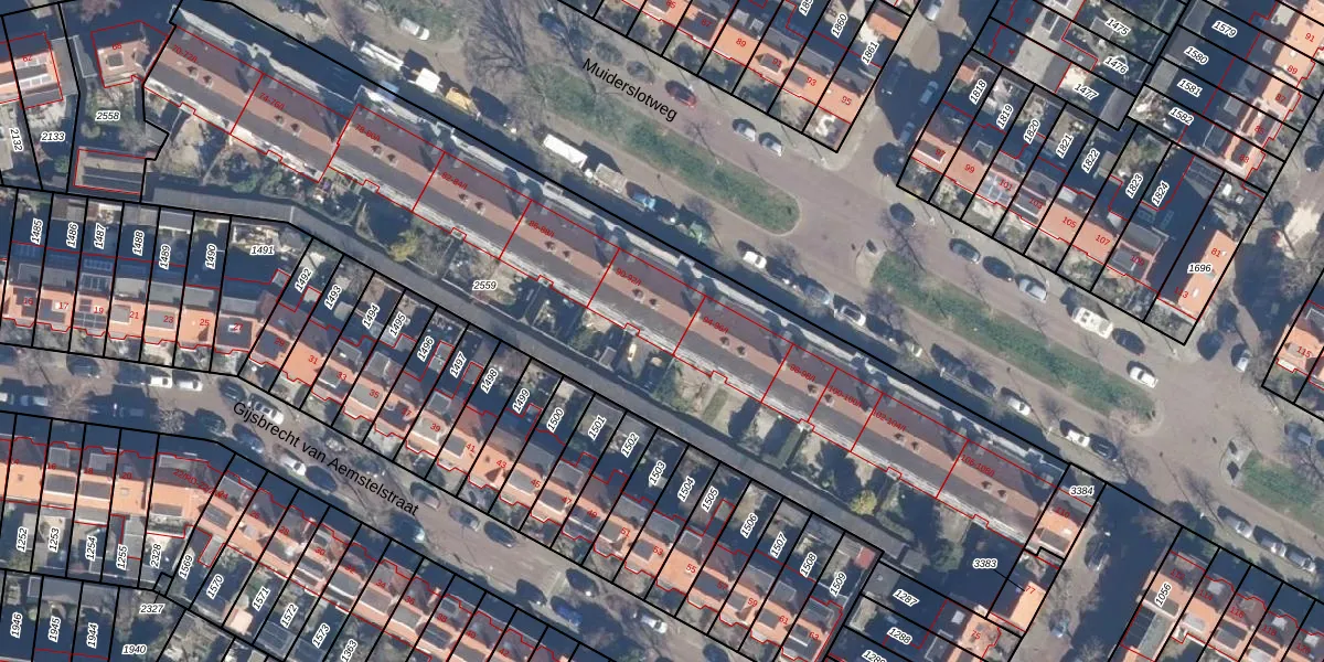 Het perceel waarop Muiderslotweg 92-I staat heeft een oppervlakte van 3877 m². Dit is een zeer groot perceel. De perceeloppervlakte wordt geregistreerd door het Kadaster. Gedetailleerde informatie over de maten van dit perceel kunt u vinden in het rapport Kadastrale kaart met maatvoering van Muiderslotweg 92-I.