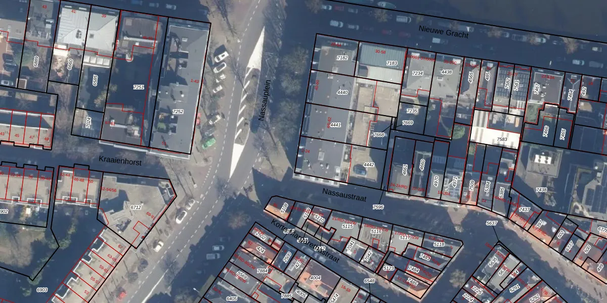 Het perceel waarop Nassauplein 24 staat heeft een oppervlakte van 375 m². Dit is een groot perceel. De perceeloppervlakte wordt geregistreerd door het Kadaster. Gedetailleerde informatie over de maten van dit perceel kunt u vinden in het rapport Kadastrale kaart met maatvoering van Nassauplein 24.