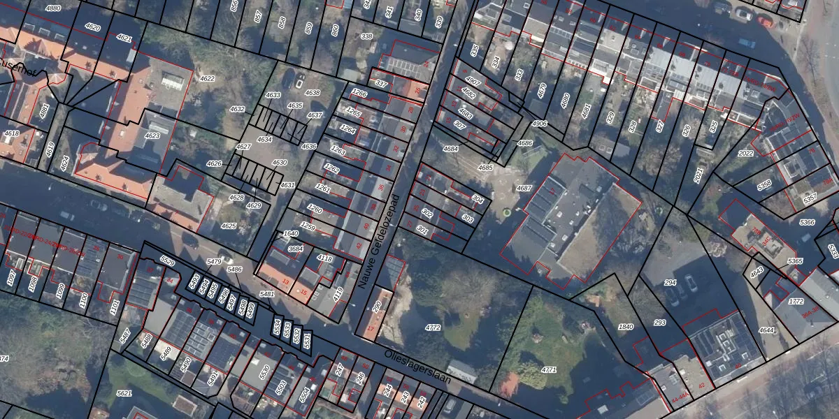 Gebruik de zoekbalk of klik op een perceel voor informatie over de adressen binnen dit perceel.