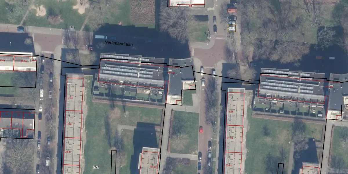 Het perceel waarop Nederlandlaan 132 staat heeft een oppervlakte van 6590 m². Dit is een zeer groot perceel. De perceeloppervlakte wordt geregistreerd door het Kadaster. Gedetailleerde informatie over de maten van dit perceel kunt u vinden in het rapport Kadastrale kaart met maatvoering van Nederlandlaan 132.