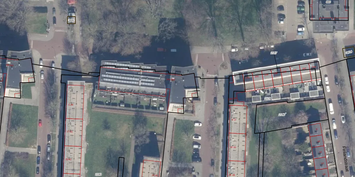 Het perceel waarop Nederlandlaan 196 staat heeft een oppervlakte van 6630 m². Dit is een zeer groot perceel. De perceeloppervlakte wordt geregistreerd door het Kadaster. Gedetailleerde informatie over de maten van dit perceel kunt u vinden in het rapport Kadastrale kaart met maatvoering van Nederlandlaan 196.