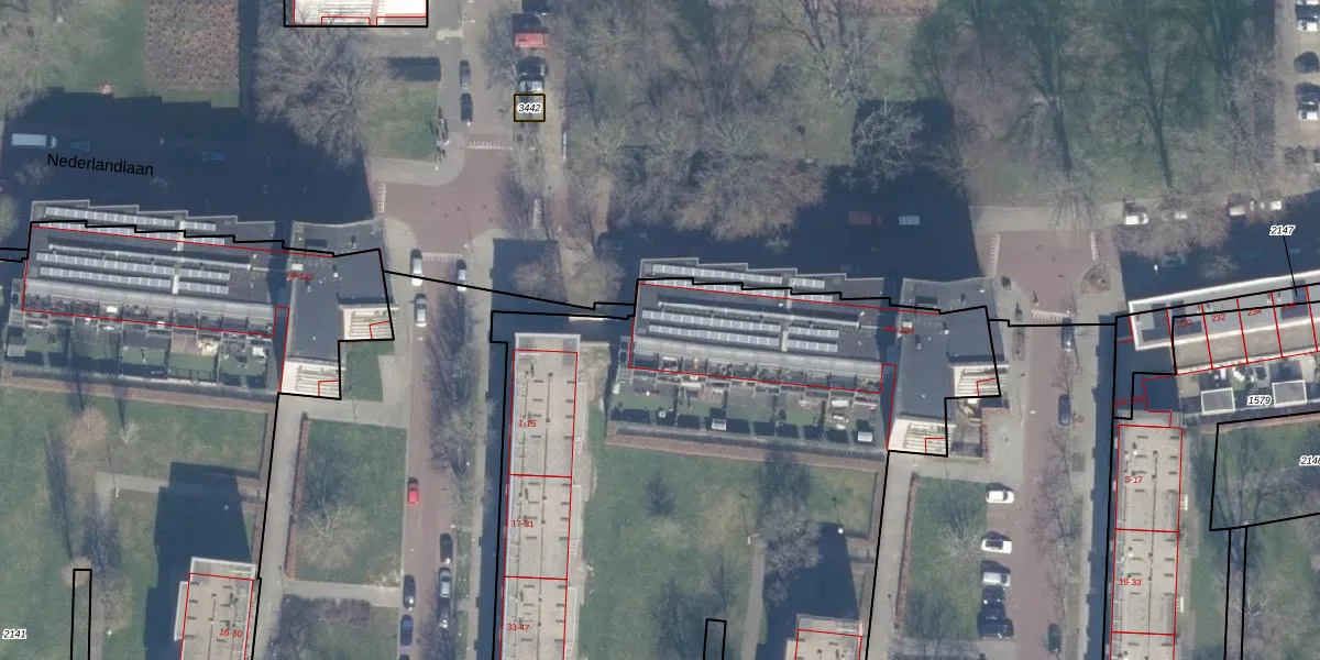 Het perceel waarop Nederlandlaan 200 staat heeft een oppervlakte van 6630 m². Dit is een zeer groot perceel. De perceeloppervlakte wordt geregistreerd door het Kadaster. Gedetailleerde informatie over de maten van dit perceel kunt u vinden in het rapport Kadastrale kaart met maatvoering van Nederlandlaan 200.