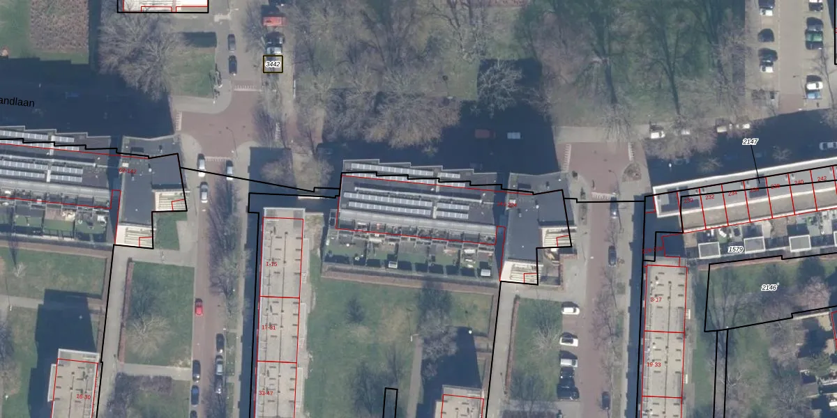 Het perceel waarop Nederlandlaan 204 staat heeft een oppervlakte van 6630 m². Dit is een zeer groot perceel. De perceeloppervlakte wordt geregistreerd door het Kadaster. Gedetailleerde informatie over de maten van dit perceel kunt u vinden in het rapport Kadastrale kaart met maatvoering van Nederlandlaan 204.