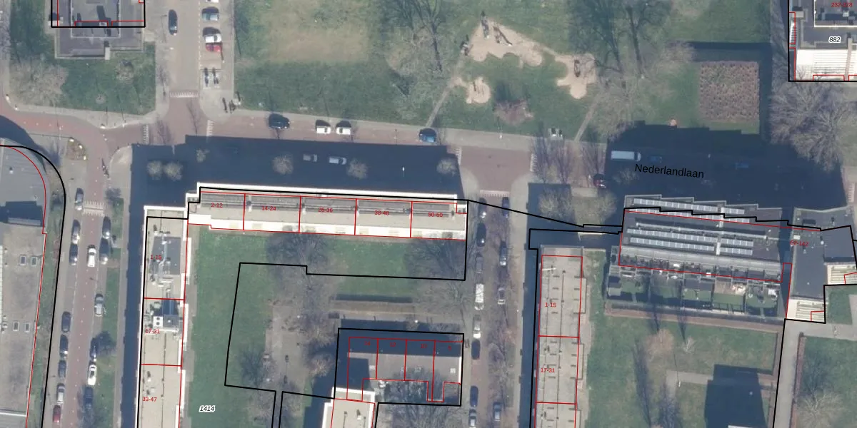 Nederlandlaan 50 is gelegen op kadastraal perceel HLM02Q1414. Deze kadastrale aanduiding is uniek en wordt gebruikt door het Kadaster om eigendomsrechten en andere zakelijke rechten vast te leggen. Het perceel maakt onderdeel uit van de kadastrale gemeente Haarlem.