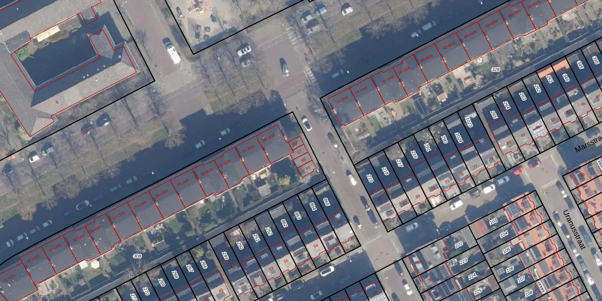 Het perceel waarop Neptunusstraat 67 staat heeft een oppervlakte van 3633 m². Dit is een zeer groot perceel. De perceeloppervlakte wordt geregistreerd door het Kadaster. Gedetailleerde informatie over de maten van dit perceel kunt u vinden in het rapport Kadastrale kaart met maatvoering van Neptunusstraat 67.