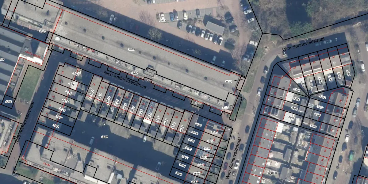 Nico Andriessenstraat 107 is gelegen op kadastraal perceel HLM02P3612. Deze kadastrale aanduiding is uniek en wordt gebruikt door het Kadaster om eigendomsrechten en andere zakelijke rechten vast te leggen. Het perceel maakt onderdeel uit van de kadastrale gemeente Haarlem.