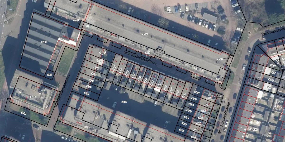 Nico Andriessenstraat 24 is gelegen op kadastraal perceel HLM02P3626. Deze kadastrale aanduiding is uniek en wordt gebruikt door het Kadaster om eigendomsrechten en andere zakelijke rechten vast te leggen. Het perceel maakt onderdeel uit van de kadastrale gemeente Haarlem.