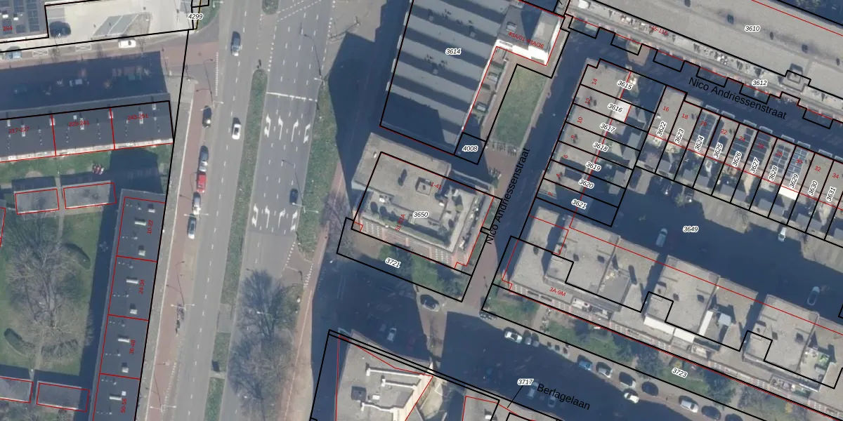 Nico Andriessenstraat 41 is gelegen op kadastraal perceel HLM02P3650. Deze kadastrale aanduiding is uniek en wordt gebruikt door het Kadaster om eigendomsrechten en andere zakelijke rechten vast te leggen. Het perceel maakt onderdeel uit van de kadastrale gemeente Haarlem.