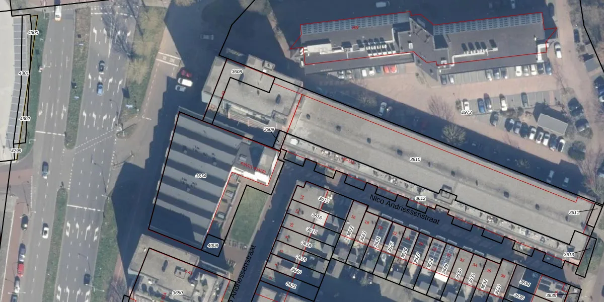 Nico Andriessenstraat 47 is gelegen op kadastraal perceel HLM02P3612. Deze kadastrale aanduiding is uniek en wordt gebruikt door het Kadaster om eigendomsrechten en andere zakelijke rechten vast te leggen. Het perceel maakt onderdeel uit van de kadastrale gemeente Haarlem.