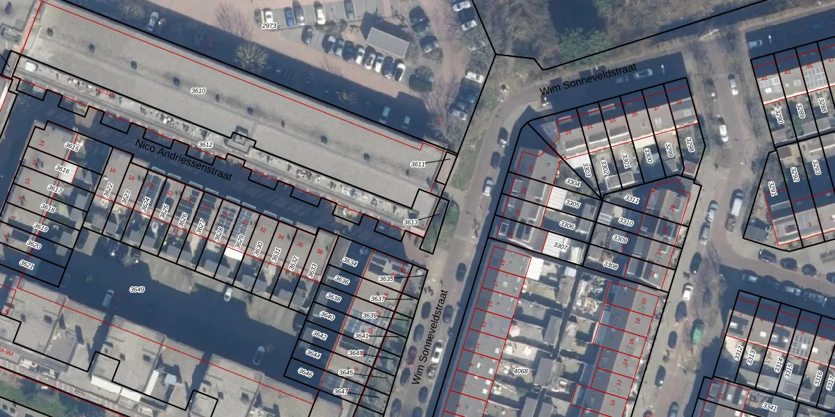 Nico Andriessenstraat 99 is gelegen op kadastraal perceel HLM02P3612. Deze kadastrale aanduiding is uniek en wordt gebruikt door het Kadaster om eigendomsrechten en andere zakelijke rechten vast te leggen. Het perceel maakt onderdeel uit van de kadastrale gemeente Haarlem.