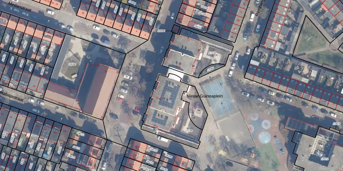 Het perceel waarop Nieuw Guineaplein 22 staat heeft een oppervlakte van 910 m². Dit is een groot perceel. De perceeloppervlakte wordt geregistreerd door het Kadaster. Gedetailleerde informatie over de maten van dit perceel kunt u vinden in het rapport Kadastrale kaart met maatvoering van Nieuw Guineaplein 22.