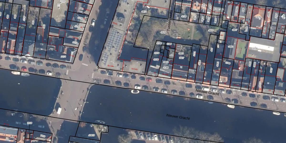 Nieuwe Gracht 54 is gelegen op kadastraal perceel HLM01B3472. Deze kadastrale aanduiding is uniek en wordt gebruikt door het Kadaster om eigendomsrechten en andere zakelijke rechten vast te leggen. Het perceel maakt onderdeel uit van de kadastrale gemeente Haarlem.