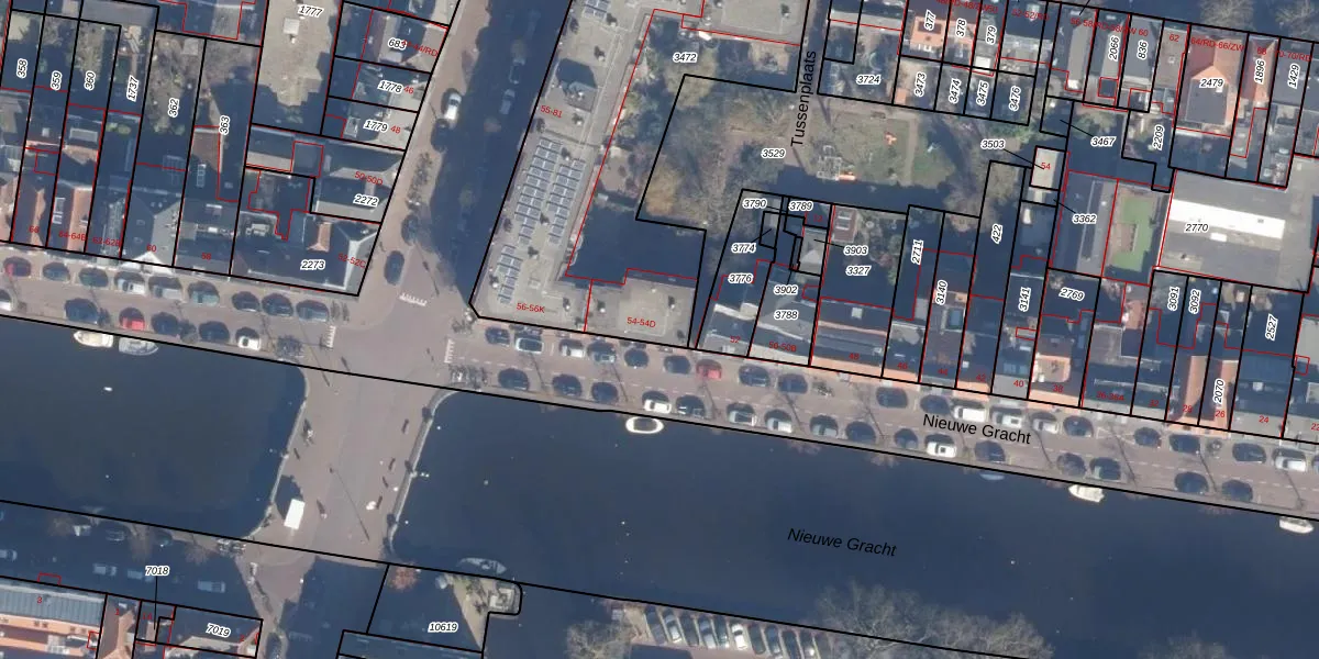 Nieuwe Gracht 54-A is gelegen op kadastraal perceel HLM01B3472. Deze kadastrale aanduiding is uniek en wordt gebruikt door het Kadaster om eigendomsrechten en andere zakelijke rechten vast te leggen. Het perceel maakt onderdeel uit van de kadastrale gemeente Haarlem.
