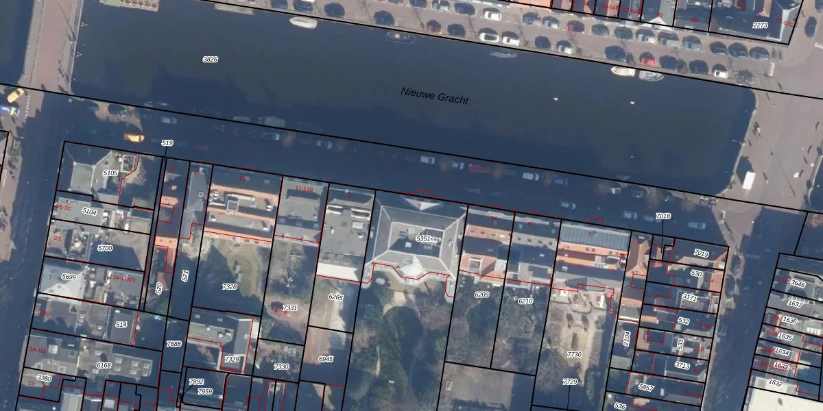 Het perceel waarop Nieuwe Gracht 7 staat heeft een oppervlakte van 1500 m². Dit is een zeer groot perceel. De perceeloppervlakte wordt geregistreerd door het Kadaster. Gedetailleerde informatie over de maten van dit perceel kunt u vinden in het rapport Kadastrale kaart met maatvoering van Nieuwe Gracht 7.