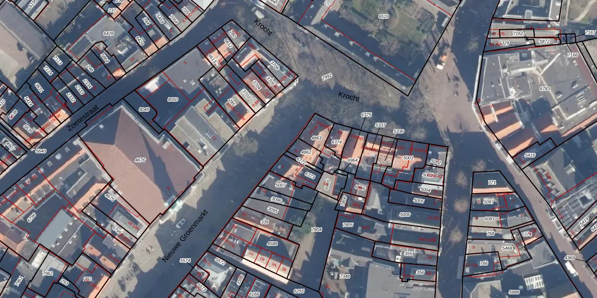 Het perceel waarop Nieuwe Groenmarkt 1 staat heeft een oppervlakte van 57 m². Dit is een klein perceel. De perceeloppervlakte wordt geregistreerd door het Kadaster. Gedetailleerde informatie over de maten van dit perceel kunt u vinden in het rapport Kadastrale kaart met maatvoering van Nieuwe Groenmarkt 1.