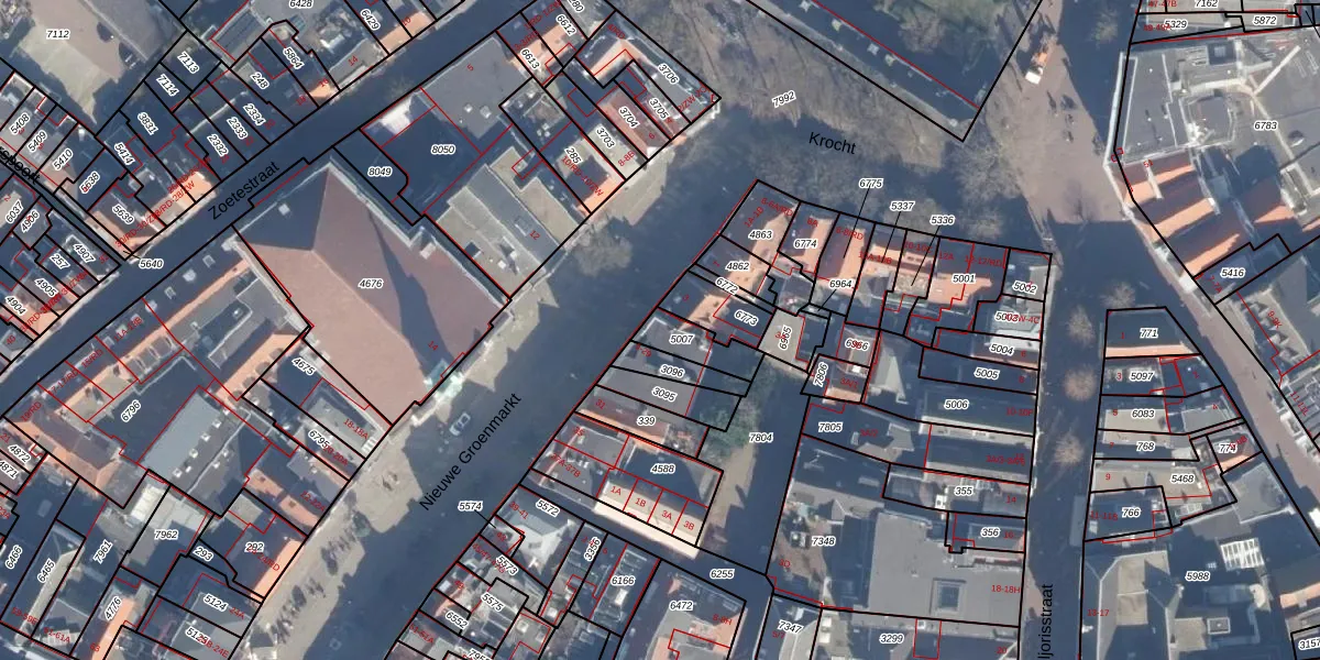 Het perceel waarop Nieuwe Groenmarkt 25 staat heeft een oppervlakte van 86 m². Dit is een klein perceel. De perceeloppervlakte wordt geregistreerd door het Kadaster. Gedetailleerde informatie over de maten van dit perceel kunt u vinden in het rapport Kadastrale kaart met maatvoering van Nieuwe Groenmarkt 25.