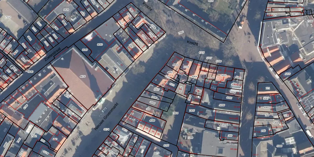 Het perceel waarop Nieuwe Groenmarkt 3 staat heeft een oppervlakte van 84 m². Dit is een klein perceel. De perceeloppervlakte wordt geregistreerd door het Kadaster. Gedetailleerde informatie over de maten van dit perceel kunt u vinden in het rapport Kadastrale kaart met maatvoering van Nieuwe Groenmarkt 3.