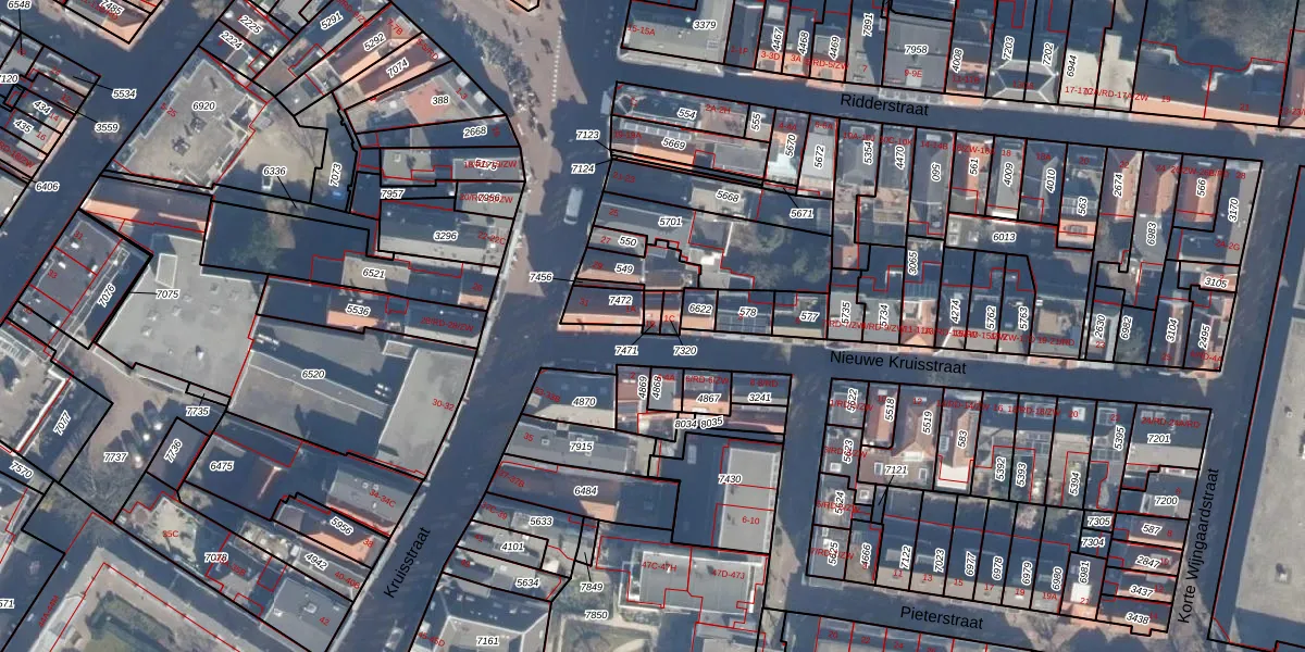 Het perceel waarop Nieuwe Kruisstraat 1-B staat heeft een oppervlakte van 20 m². Dit is een klein perceel. De perceeloppervlakte wordt geregistreerd door het Kadaster. Gedetailleerde informatie over de maten van dit perceel kunt u vinden in het rapport Kadastrale kaart met maatvoering van Nieuwe Kruisstraat 1-B.