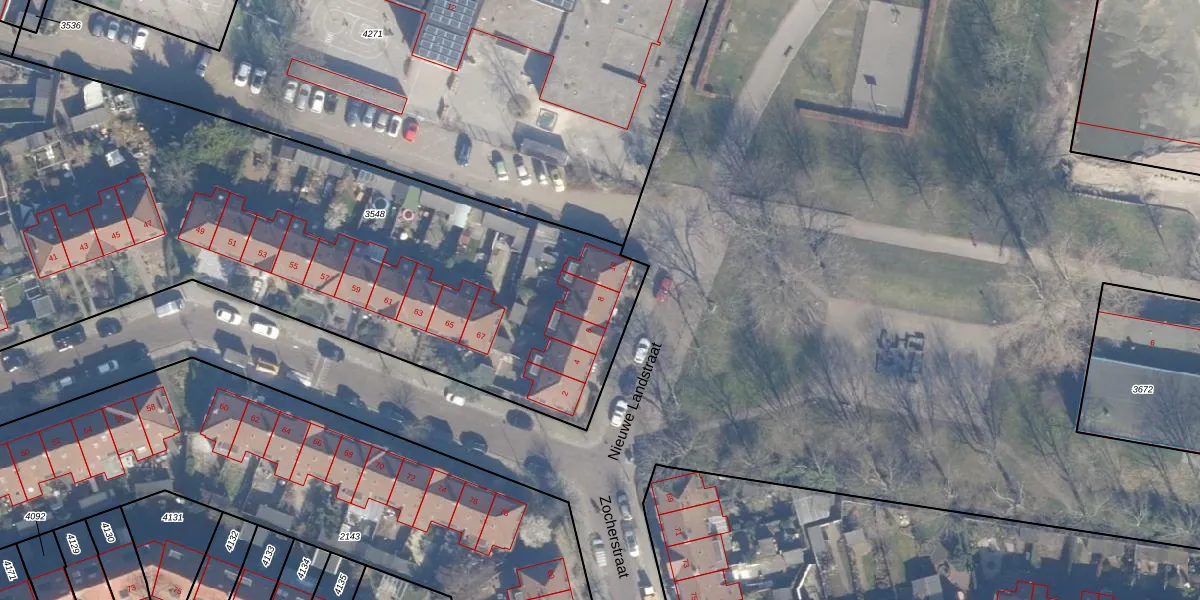 Het perceel waarop Nieuwe Landstraat 8 staat heeft een oppervlakte van 4338 m². Dit is een zeer groot perceel. De perceeloppervlakte wordt geregistreerd door het Kadaster. Gedetailleerde informatie over de maten van dit perceel kunt u vinden in het rapport Kadastrale kaart met maatvoering van Nieuwe Landstraat 8.