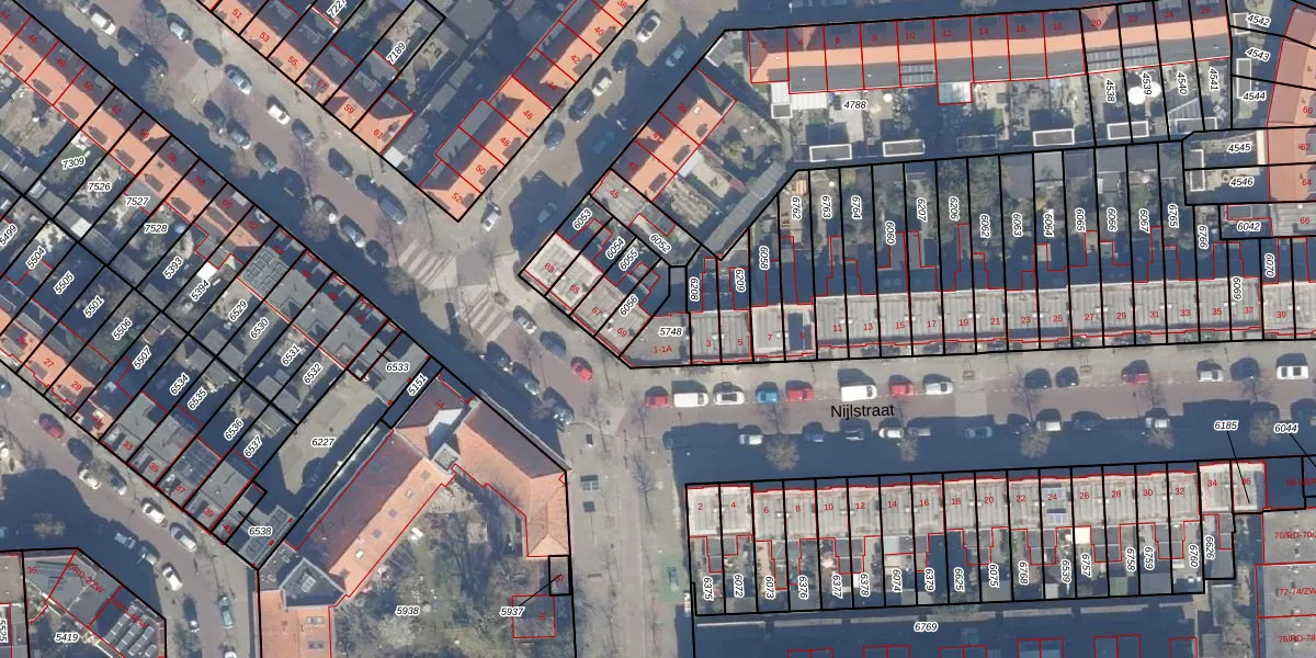 Het perceel waarop Nijlstraat 1-A staat heeft een oppervlakte van 92 m². Dit is een klein perceel. De perceeloppervlakte wordt geregistreerd door het Kadaster. Gedetailleerde informatie over de maten van dit perceel kunt u vinden in het rapport Kadastrale kaart met maatvoering van Nijlstraat 1-A.