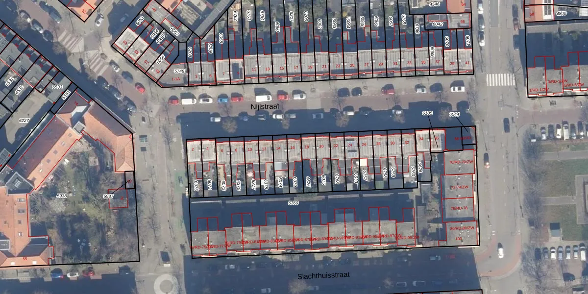 Gebruik de zoekbalk of klik op een perceel voor informatie over de adressen binnen dit perceel.
