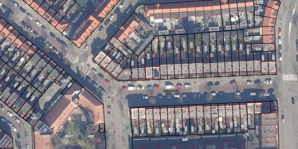 Het perceel waarop Nijlstraat 7 staat heeft een oppervlakte van 109 m². Dit is een middelgroot perceel. De perceeloppervlakte wordt geregistreerd door het Kadaster. Gedetailleerde informatie over de maten van dit perceel kunt u vinden in het rapport Kadastrale kaart met maatvoering van Nijlstraat 7.
