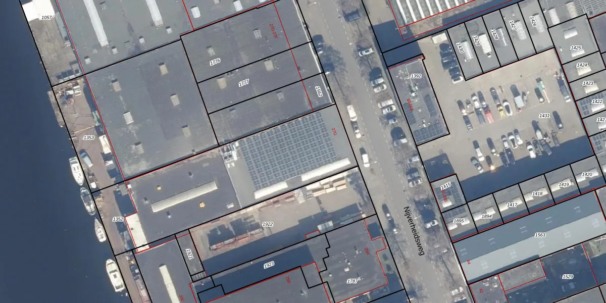 Het perceel waarop Nijverheidsweg 27-G staat heeft een oppervlakte van 1936 m². Dit is een zeer groot perceel. De perceeloppervlakte wordt geregistreerd door het Kadaster. Gedetailleerde informatie over de maten van dit perceel kunt u vinden in het rapport Kadastrale kaart met maatvoering van Nijverheidsweg 27-G.