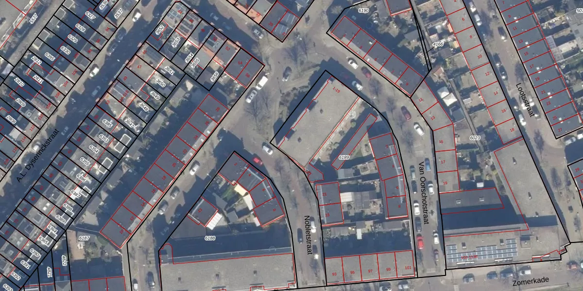 Het perceel waarop Nobletstraat 19 staat heeft een oppervlakte van 2204 m². Dit is een zeer groot perceel. De perceeloppervlakte wordt geregistreerd door het Kadaster. Gedetailleerde informatie over de maten van dit perceel kunt u vinden in het rapport Kadastrale kaart met maatvoering van Nobletstraat 19.