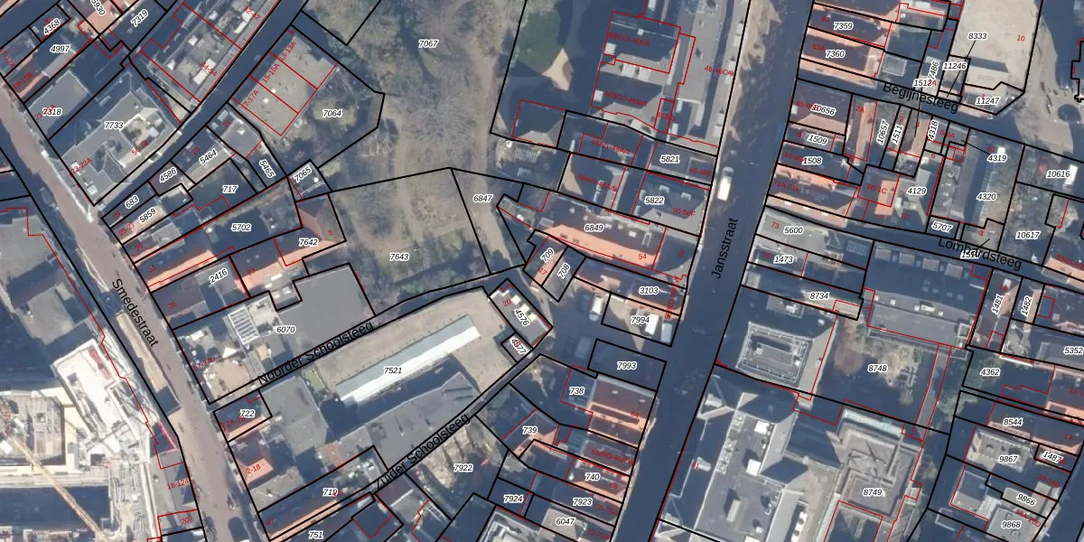 Gebruik de zoekbalk of klik op een perceel voor informatie over de adressen binnen dit perceel.
