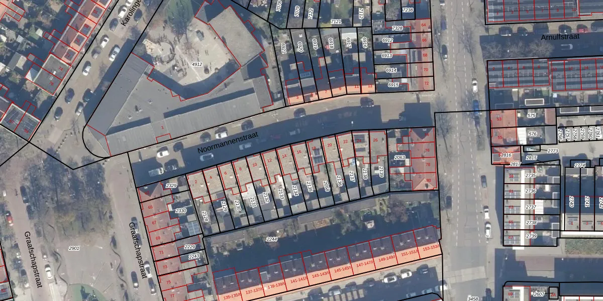 Het perceel waarop Noormannenstraat 16 staat heeft een oppervlakte van 112 m². Dit is een middelgroot perceel. De perceeloppervlakte wordt geregistreerd door het Kadaster. Gedetailleerde informatie over de maten van dit perceel kunt u vinden in het rapport Kadastrale kaart met maatvoering van Noormannenstraat 16.