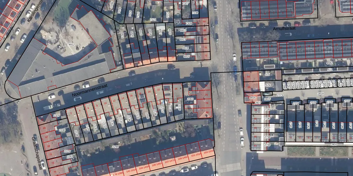 Het perceel waarop Noormannenstraat 26 staat heeft een oppervlakte van 125 m². Dit is een middelgroot perceel. De perceeloppervlakte wordt geregistreerd door het Kadaster. Gedetailleerde informatie over de maten van dit perceel kunt u vinden in het rapport Kadastrale kaart met maatvoering van Noormannenstraat 26.