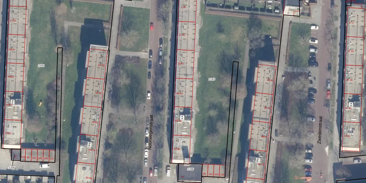 Het perceel waarop Noorwegenstraat 51 staat heeft een oppervlakte van 6630 m². Dit is een zeer groot perceel. De perceeloppervlakte wordt geregistreerd door het Kadaster. Gedetailleerde informatie over de maten van dit perceel kunt u vinden in het rapport Kadastrale kaart met maatvoering van Noorwegenstraat 51.