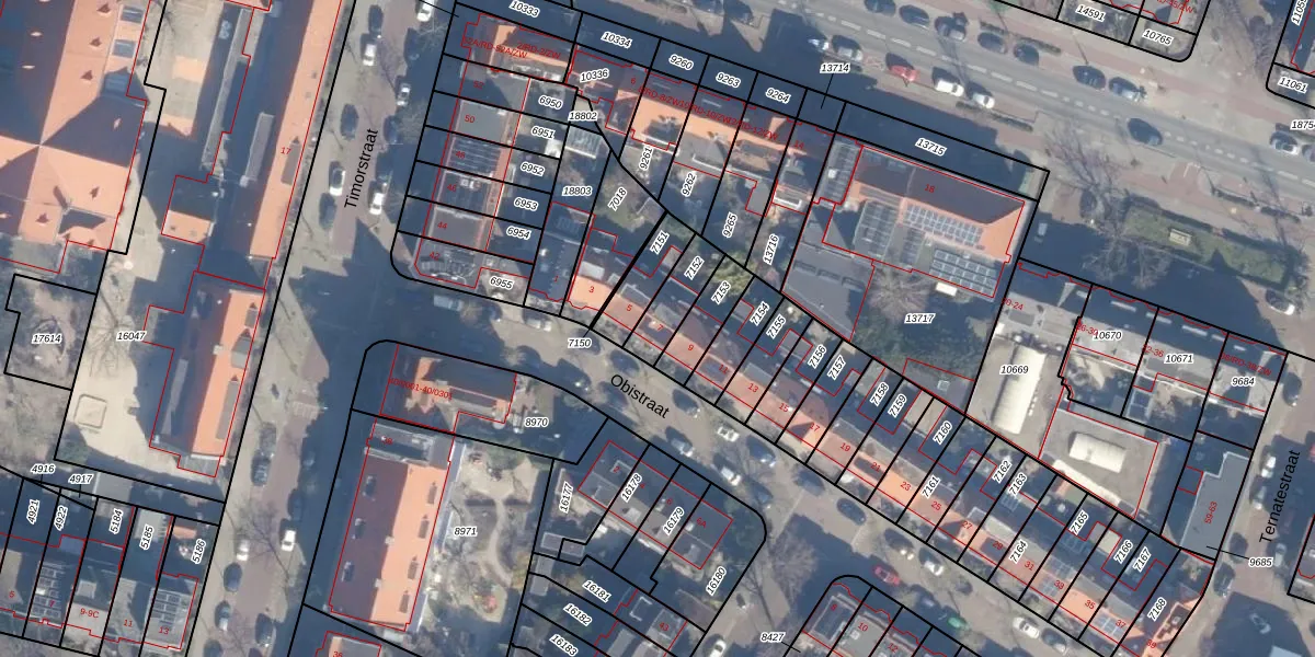 Het perceel waarop Obistraat 7 staat heeft een oppervlakte van 114 m². Dit is een middelgroot perceel. De perceeloppervlakte wordt geregistreerd door het Kadaster. Gedetailleerde informatie over de maten van dit perceel kunt u vinden in het rapport Kadastrale kaart met maatvoering van Obistraat 7.