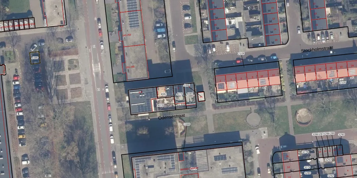 Odensestraat 2 is gelegen op kadastraal perceel HLM02Y4079. Deze kadastrale aanduiding is uniek en wordt gebruikt door het Kadaster om eigendomsrechten en andere zakelijke rechten vast te leggen. Het perceel maakt onderdeel uit van de kadastrale gemeente Haarlem.