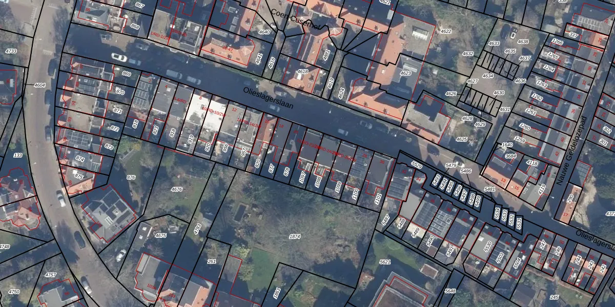 Olieslagerslaan 22-RD is gelegen op kadastraal perceel HLM01I1097. Deze kadastrale aanduiding is uniek en wordt gebruikt door het Kadaster om eigendomsrechten en andere zakelijke rechten vast te leggen. Het perceel maakt onderdeel uit van de kadastrale gemeente Haarlem.