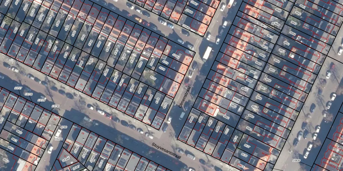 Gebruik de zoekbalk of klik op een perceel voor informatie over de adressen binnen dit perceel.