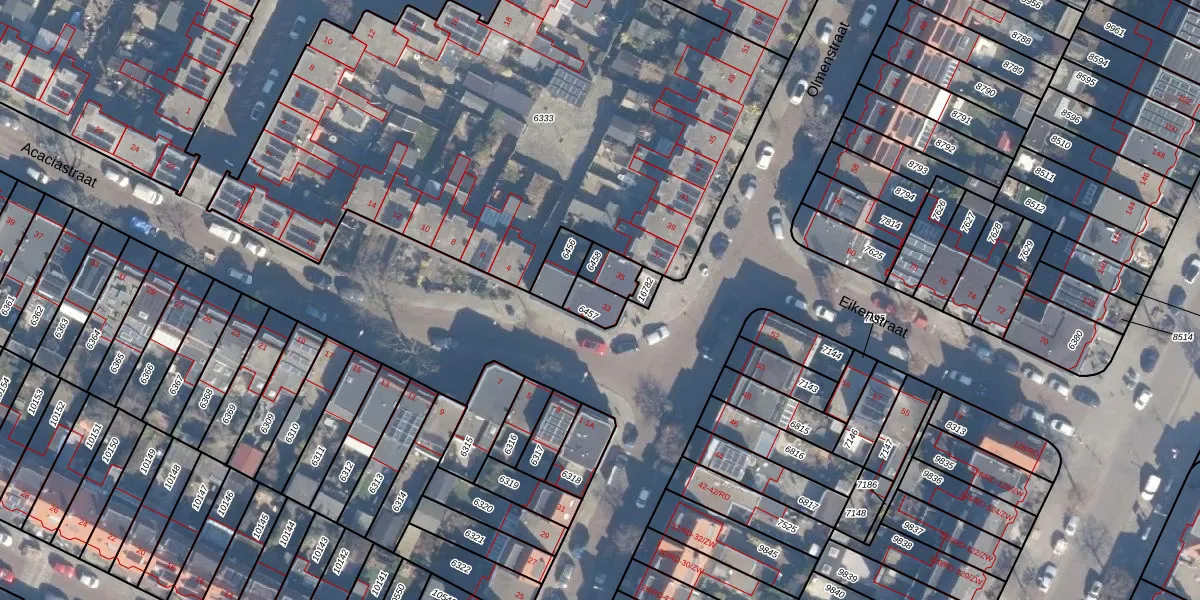 Het perceel waarop Olmenstraat 33 staat heeft een oppervlakte van 55 m². Dit is een klein perceel. De perceeloppervlakte wordt geregistreerd door het Kadaster. Gedetailleerde informatie over de maten van dit perceel kunt u vinden in het rapport Kadastrale kaart met maatvoering van Olmenstraat 33.