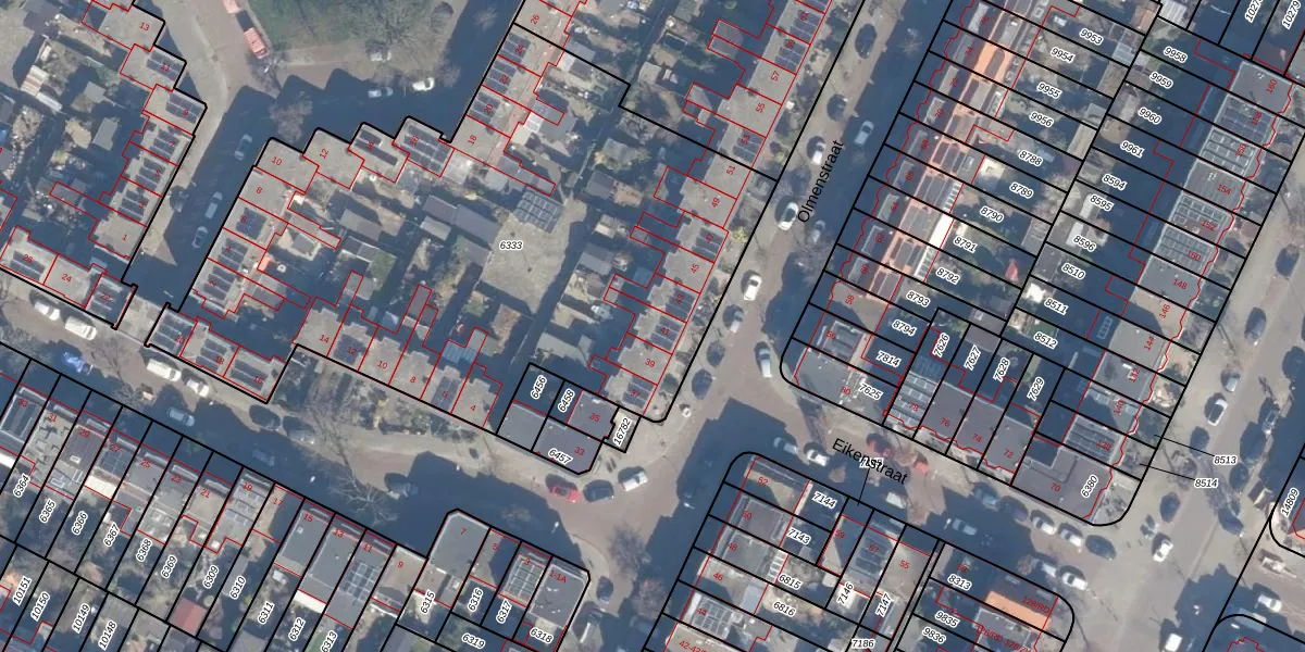 Het perceel waarop Olmenstraat 41 staat heeft een oppervlakte van 3426 m². Dit is een zeer groot perceel. De perceeloppervlakte wordt geregistreerd door het Kadaster. Gedetailleerde informatie over de maten van dit perceel kunt u vinden in het rapport Kadastrale kaart met maatvoering van Olmenstraat 41.