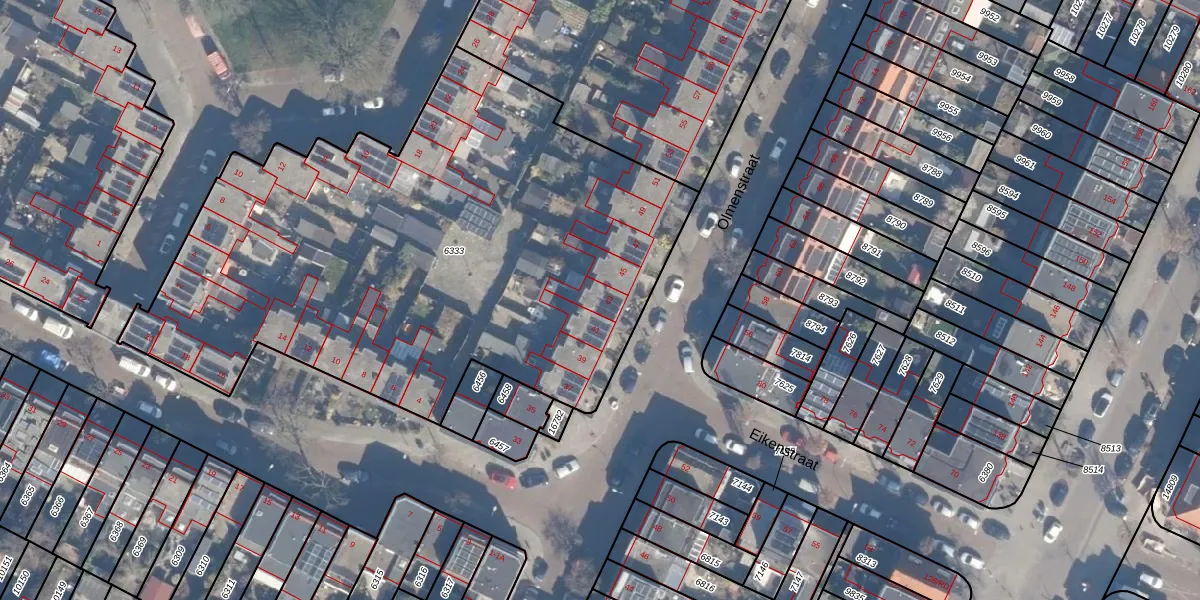 Het perceel waarop Olmenstraat 43 staat heeft een oppervlakte van 3426 m². Dit is een zeer groot perceel. De perceeloppervlakte wordt geregistreerd door het Kadaster. Gedetailleerde informatie over de maten van dit perceel kunt u vinden in het rapport Kadastrale kaart met maatvoering van Olmenstraat 43.