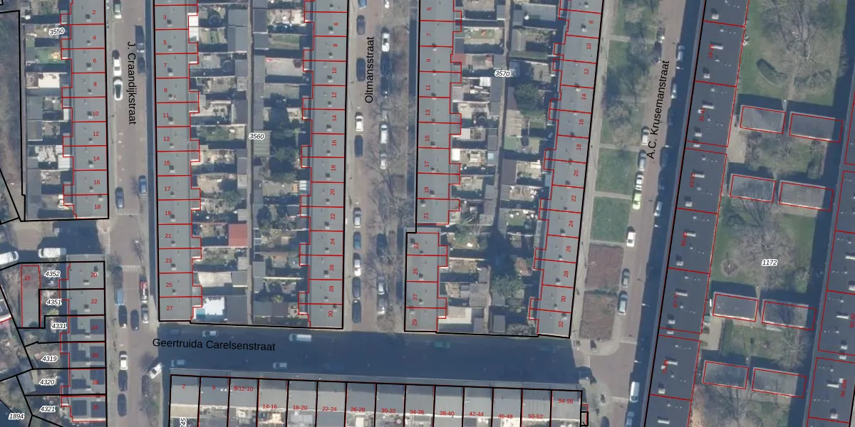Het perceel waarop Oltmansstraat 21 staat heeft een oppervlakte van 3858 m². Dit is een zeer groot perceel. De perceeloppervlakte wordt geregistreerd door het Kadaster. Gedetailleerde informatie over de maten van dit perceel kunt u vinden in het rapport Kadastrale kaart met maatvoering van Oltmansstraat 21.